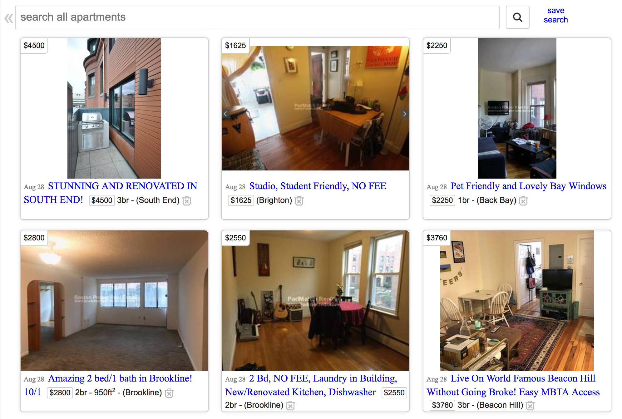 Listings look identical in structure, but have different information populating them