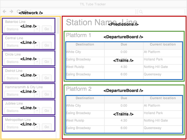 Where do you see "nested components;" that is, where are there components inside another component? Where do you see just one "layer" instead?