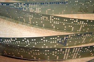 Early computers used punch cards or paper tape to do I/O - literally holes in a piece of paper. Here is an example of a 1950s IBM punch card: