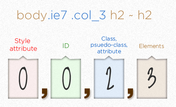 One of the most important concepts with CSS is specificity. Imagine you select an element by it's class and give it some style; then, on the next line, you select the same element by it's element name and it's ID - how does the browser know what style to apply? Well, every element gets a score and it's this score that dictates what CSS property is applied.