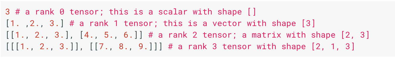 A tensor is a generic term for vector (in the mathematical sense). A tensor's rank is the number of dimensions. You can think of these as levels of depth in your arrays.